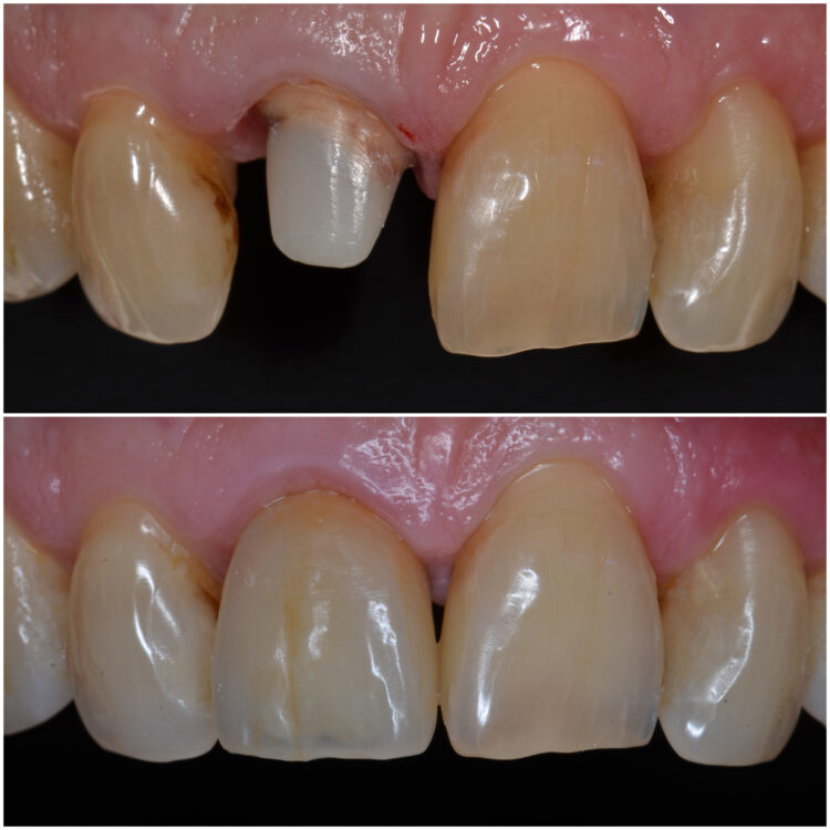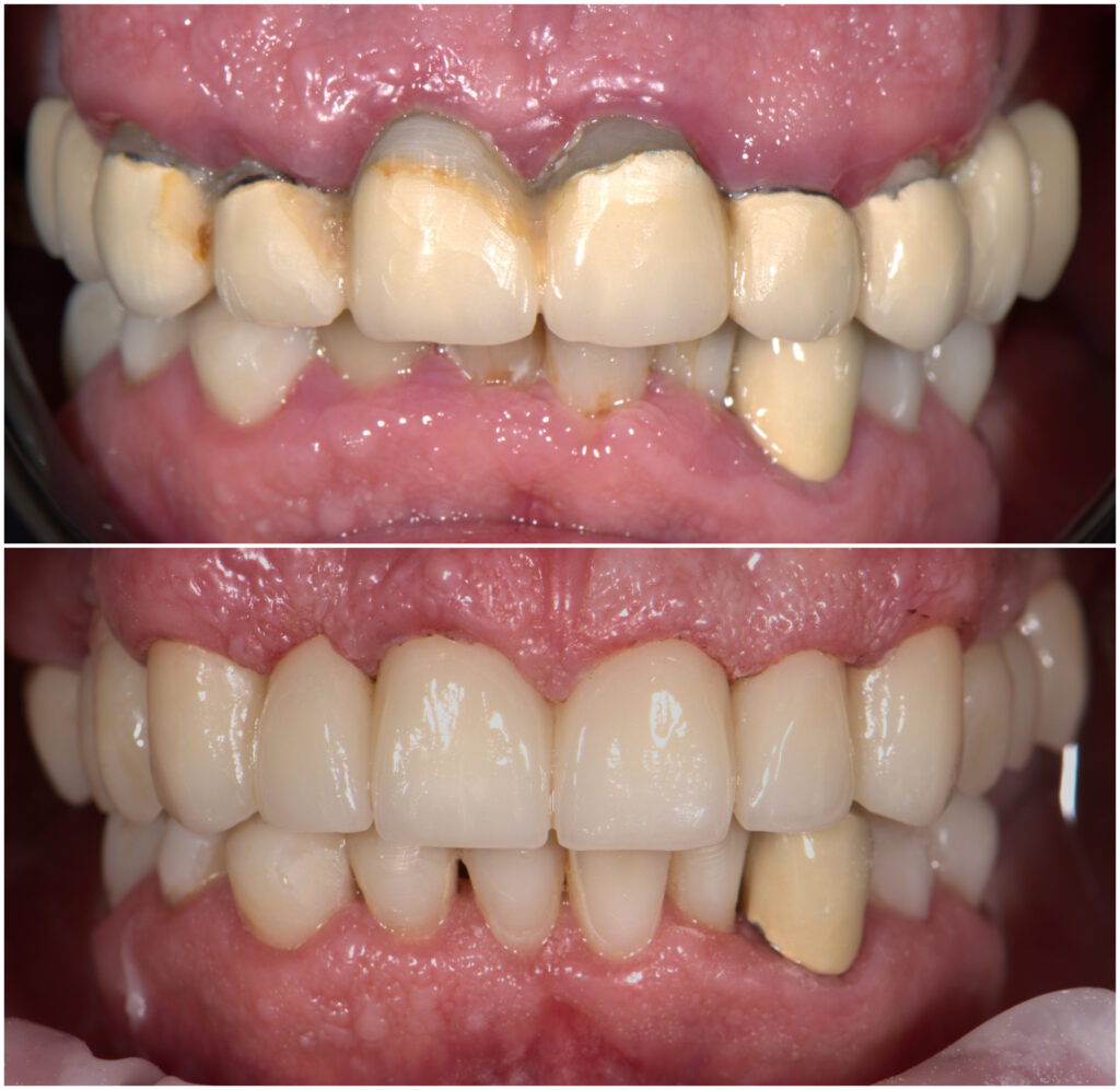 Tam, kde z důvodu velkého defektu není možná rekonstrukce pomocí fotokompozitních výplní, opatříme destruovaný zub korunkou zhotovenou v zubní laboratoři. Na základě otisku vytvoří laborant na modelu přesný tvar zubu, nejčastěji z dentální keramiky. Takto vzniklá náhrada se následně nalepí na Váš zub. Dojde-li k úplné ztrátě celého zubu, dokážeme podobným postupem doplnit korunkovou část zubu na stomatochirurgem zavedený implantát.